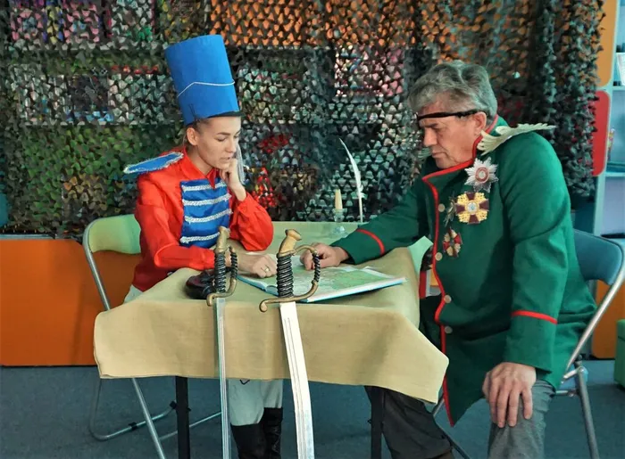 Всё было максимально приближено к историческим реалиям. Девочки не могли оторвать взгляд от костюмов, а мальчики спешили примерить мундир русского пехотинца и прикоснуться к оружию, ведь мушкеты, пистолеты, сабли можно было не только увидеть, но и потрогать.