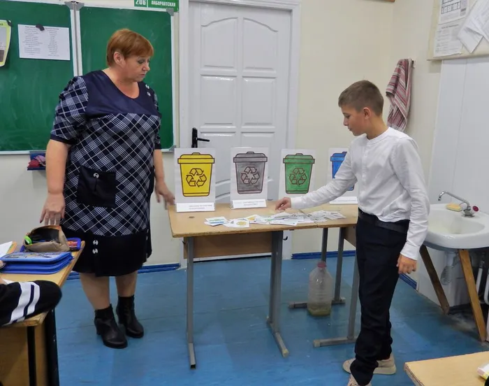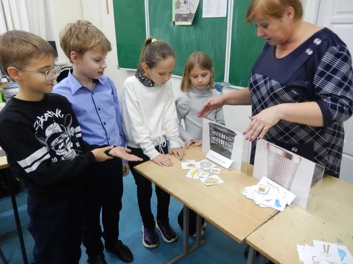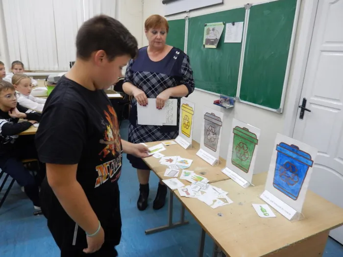 Библиотекарь рассказала ребятам сколько мусора ежегодно поступает на мировые свалки и как его утилизируют, почему нельзя выбрасывать отслужившие свой срок батарейки и люминесцентные лампы и чем опасно сжигание мусора. Школьники познакомились с практикой раздельного сбора бытовых отходов, их переработки и закрепили полученные знания в игре «Сортируем мусор правильно».