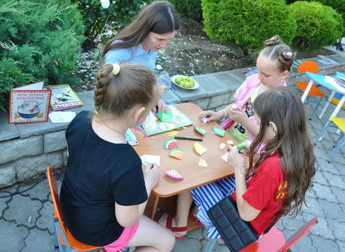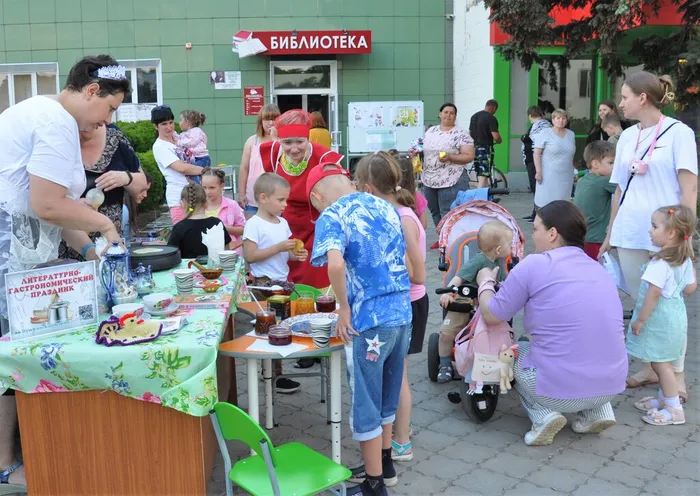 Попрощавшись со Страной Здоровья, желающие проследовали на литературно-гастрономическую площадку где их ждали: мастер-класс по выпечке блинов – сам спеки, сам съешь, уютное фито-кафе с разнообразными травяными чайными напитками и мастер-класс оригами по изготовлению «фруктовых» закладок для книг.