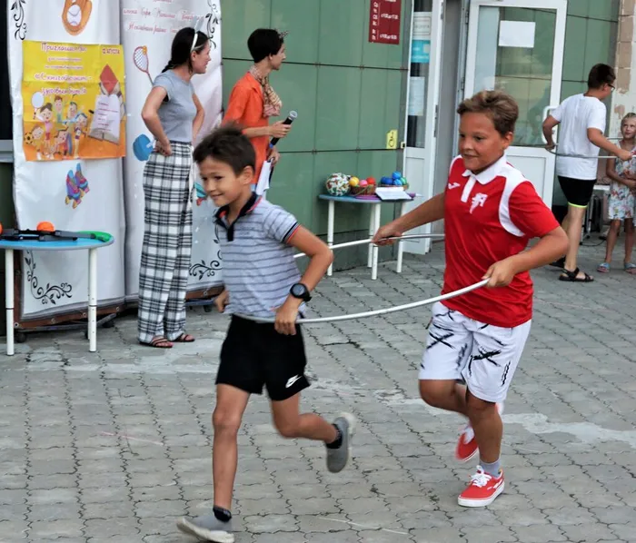 На празднике «Давайте жить спортивно!» ребята встретились с хорошо знакомым им котом Леопольдом и мышками: Митей и Мотей. Дети участвовали в самых разнообразных цветных и ярких эстафетах, забегах и конкурсах, разгадывали викторины, вспоминали олимпийские виды спорта, шуточно бились на ракетках, прыгали в длину и перетягивали канат. Пришлось по вкусу и соревнование «Дружная семья», в котором дети и их родители показали поразительную слаженность.