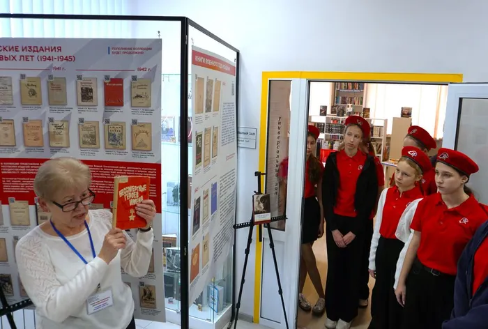 Первыми посетителями выставки стали юнармейцы Покровской СОШ (НОК). Сопровождал обзор показ некоторых из заявленных книг из фондов Межпоселенческой центральной библиотеки им. И. М. Бондаренко, а также голос легендарного Юрия Левитана. Непосредственно во время посещения экспозиции участники знакомились с содержанием документов с помощью «QR-кодов».
