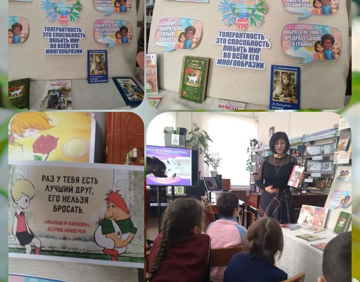 В библиотеках проходили этнографические диктанты и турниры, уроки и часы толерантности «Мы разные, но мы дружные», «Всемирный хоровод», «Через книгу-к миру и согласию», «Давайте уважать друг друга», народные игры и викторины «Путешествие по планете «Толерантность», «Ты и я мы разные, ты и я - мы классные», вечера-диспуты, читальные залы под открытым небом «Толерантность в литературе».