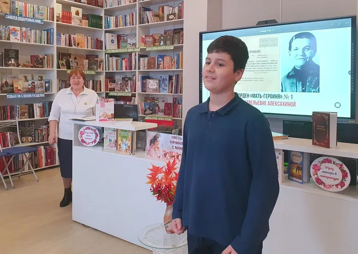 Ведущая мероприятия поздравила гостей с праздником и поделилась размышлениями о роли матери в русской литературе, приведя примеры героинь произведений В. Закруткина, М. Шолохова и К. Паустовского.