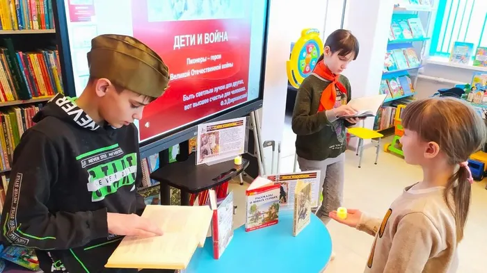 Для участников была подготовлена книжная выставка «Маленькие герои большой войны». Ребята рассматривали художественную литературу о юных героях, которая помогала им лучше понять дух времени и трудности, через которые прошли эти смелые люди. Чтение таких произведений воспитывает патриотизм, гордость за страну и осознание ценности мира и свободы.