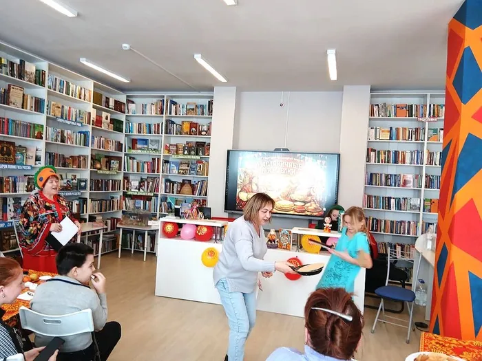 Гости фольклорного вечера угадывали пословицы, отвечали на вопросы кулинарной викторины и участвовали в игре «Блинное гадание». С особым азартом прошли конкурсы «Блины‑перевёртыши» и «Угадай, сколько бубликов». Гости артистично разыграли сценку «Блины с икрой», пели «Масленичные частушки», участвовали в лотерее и игре «Волшебный ящик».