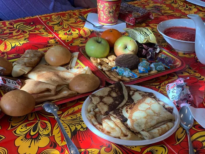 Хозяйка вечера встретила гостей накрытым праздничным столом: на нём были чай, мёд и вкусные блины. Она рассказала о празднике Масленицы, его традициях и поверьях, а также объяснила, почему масленичный блин — не просто праздничное угощение, а символ золотого солнца.