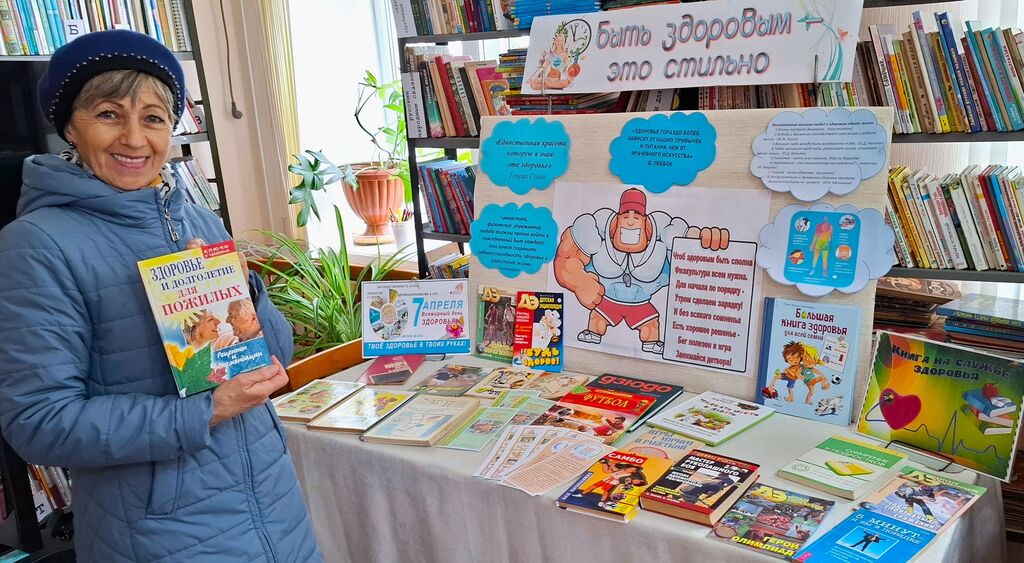 Во всех библиотеках работали интерактивные книжные выставки «Спорт и здоровье: путь к успеху» и «Быть здоровым — это стильно». На них была представлена литература для детей и взрослых: от советов по зарядке и закаливанию, до книг о здоровом питании и долголетии.