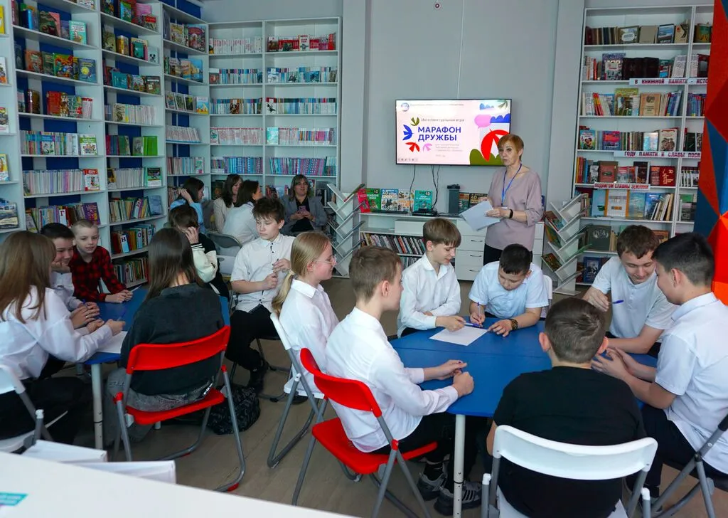 17 апреля в отделе обслуживания детей прошел первый этап интеллектуальной игры «Марафон дружбы» организатором которой является Воронежская областная детская библиотека. Проект реализуется совместно с ГБУК РО «Ростовская областная детская библиотека имени В.М. Величкиной», ГБУ ДНР «Донецкая республиканская библиотека для детей имени С.М. Кирова», ГБУК ЛНР «Луганская библиотека для детей». Игра посвящена географической, культурно-исторической и духовной общности регионов Содружества «Донбасс».